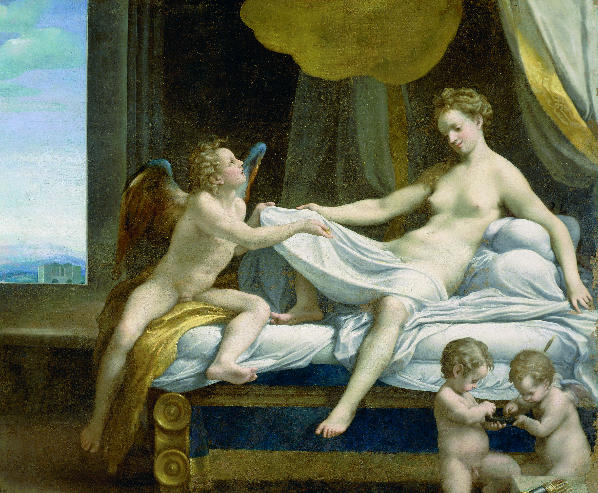 Saranno più di 20 i capolavori di Correggio esposti a Roma con alcune novità assolute. Si potranno vedere insieme per la prima volta la Danae della Galleria Borghese, Giove ed Io e Ganimede e l’aquila dalla Kunsthistorisches di Vienna, Educazione di Amore dalla National Gallery di Londra e Venere e Cupido con un Satiro dal Louvre. Dipinti che ritraggono scene mitologiche e che consacrano Correggio come artista di sommo livello. Le ultime due tele citate, dipinte tra 1523 e il 1525 e concepite come una coppia, sono le uniche che, insieme ai celeberrimi Amori di Giove, trattano argomenti profani. Di questa sensazionale serie di opere raffiguranti scene amorose tratte dalle Metamorfosi di Ovidio commissionate al Correggio dal duca di Mantova Federico Gonzaga per essere donate all’imperatore di Spagna Carlo V, saranno esposte la Dane, Io e Ganimede (il quarto dipinto della serie, la Leda, dalla Gemäldegalerie di Berlino, è inamovibile per ragioni conservative).