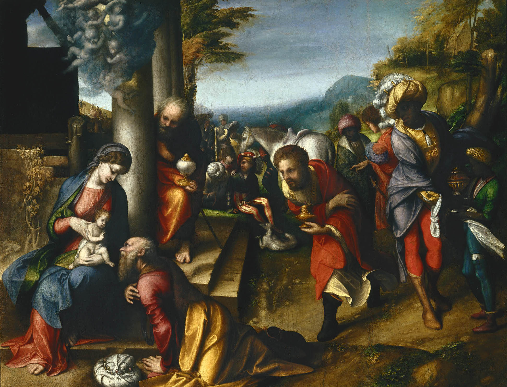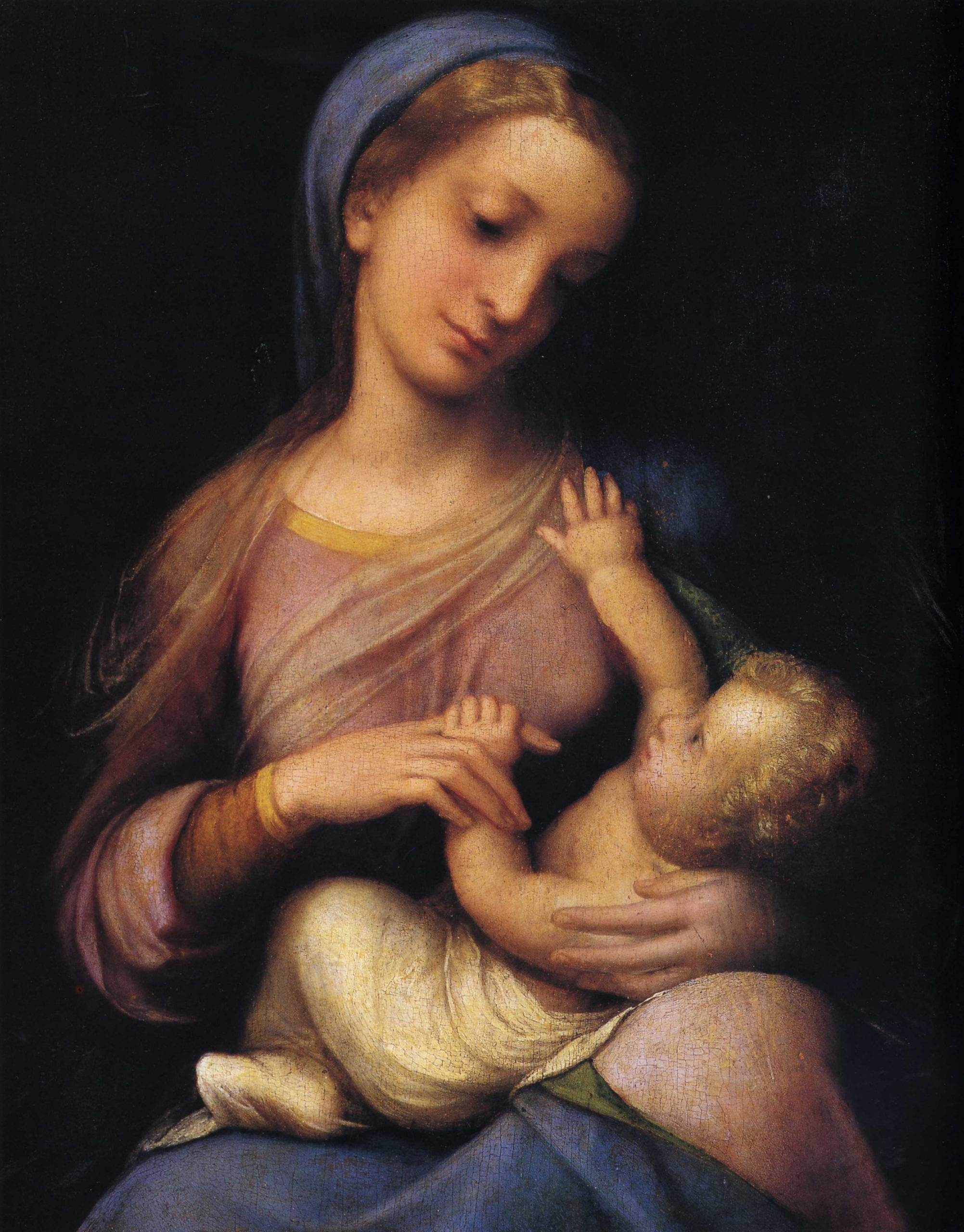 Alle opere di soggetto mitologico saranno affiancati circa venti capolavori raffiguranti temi religiosi, dove il rapporto tra Correggio e l’antico è allo stesso modo significativo per scelte formali e compositive. Come il Noli me tangere dal Prado, la Madonna del latte da Budapest, Quattro Santi dal Metropolitan, l’Adorazione dei Magi dalla Pinacoteca di Brera, Matrimonio mistico di Santa Caterina da Capodimonte e la Madonna Campori dalla Galleria Estense di Modena. Opere dalla quali emerge il Correggio pittore degli affetti, della grazia, del colore, della morbidezza e della luce. Viene spesso indicato come il pittore delle difficoltà e dell’indipingibile perché nessuno meglio di lui seppe raffigurare l’aria, i vapori, le nebbie e tutto ciò che è impalpabile e inafferrabile. E’ per accompagnare il visitatore in questo percorso ideale che la mostra romana è concepita ponendo a confronto i dipinti di Correggio con la scultura classica, ad evidenziare le sue fonti ideali; mentre lo svolgersi cronologico delle sue opere permetterà di seguire il mutamento stilistico e l’ampiezza di respiro che il contatto con Roma portò nella sua concezione. Dai temi mitologici ai capolavori raffiguranti soggetti religiosi la mostra della Galleria rappresenta la monografica più completa mai fatta su Correggio, con la sola eccezione delle inamovibili grandi pale d’altare e delle cupole.