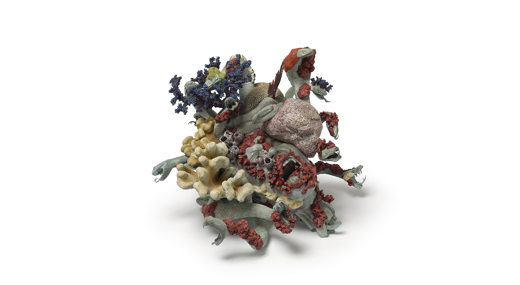 This project stems from one of Hirst’s most original projects of the last twenty years: Treasures from the Wreck of the Unbelievable, which was exhibited for the first time in 2017 in Venice at Palazzo Grassi and Punta della Dogana. Here, he worked with a variety of materials – natural, technological, and precious – with exceptional technique and skill. Made from marble, bronze, coral, rock crystal, and semi-precious stones, and inserted among the masterpieces of the Galleria’s collection, these works celebrate the desire for variety held by the museum’s founder, Cardinal Scipione Borghese. His fantasy had been to go beyond categories, not only among the arts, but also those of fiction and reality.