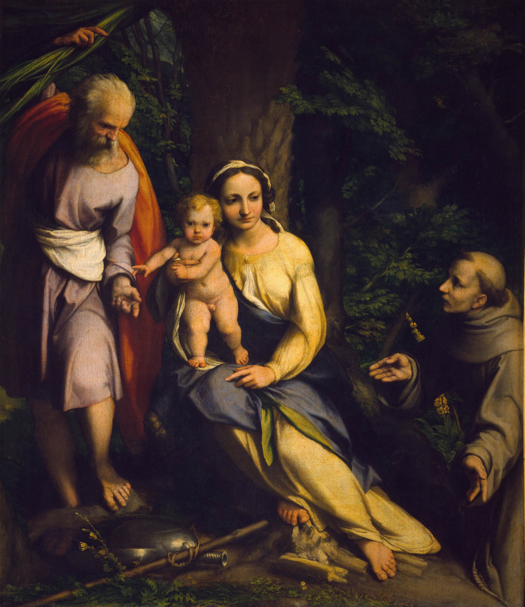 La mostra della Galleria Borghese, curata da Anna Coliva, vuole ribaltare il problema e partire proprio da Roma: come sede fisica della mostra ma anche come confronto ideale e come centro del problema. Partire da un’assenza: la mancanza di prove documentarie; per ribadire una presenza: l’idea di Roma nell’opera del Correggio, la peculiarità della sua interpretazione delle ‘forme’ romane.